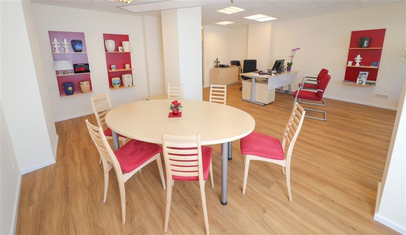 In unserem modern gestalteten Bestattungshaus in Uetersen bieten wir Ihnen einen hellen, barrierearmen Abschiedsraum für bis zu 30 Personen. Unter einem sanft leuchtenden Sternenhimmel und in warmer Atmosphäre können Sie hier ungestört und individuell Abschied nehmen. Ausreichend Parkplätze und klimatisierte Räumlichkeiten sorgen dafür, dass Sie sich voll und ganz auf Ihre Gefühle und Rituale konzentrieren können.