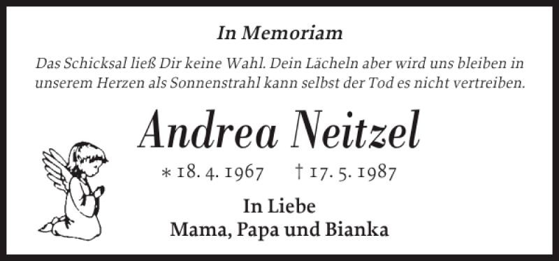 Hier finden Sie alle Traueranzeigen aus der Zeitung, die bisher für Andrea Neitzel erschienen sind. Weitere Traueranzeigen, die in der Zeitung erscheinen, werden hier ebenfalls aufgelistet