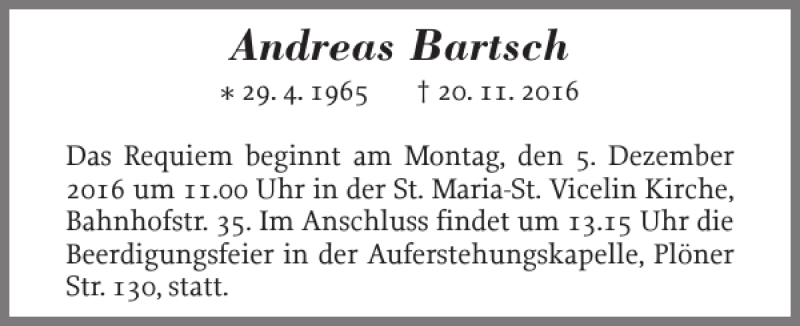 Hier finden Sie alle Traueranzeigen aus der Zeitung, die bisher für Andreas Bartsch erschienen sind. Weitere Traueranzeigen, die in der Zeitung erscheinen, werden hier ebenfalls aufgelistet