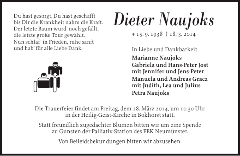 Hier finden Sie alle Traueranzeigen aus der Zeitung, die bisher für Dieter Naujoks erschienen sind. Weitere Traueranzeigen, die in der Zeitung erscheinen, werden hier ebenfalls aufgelistet