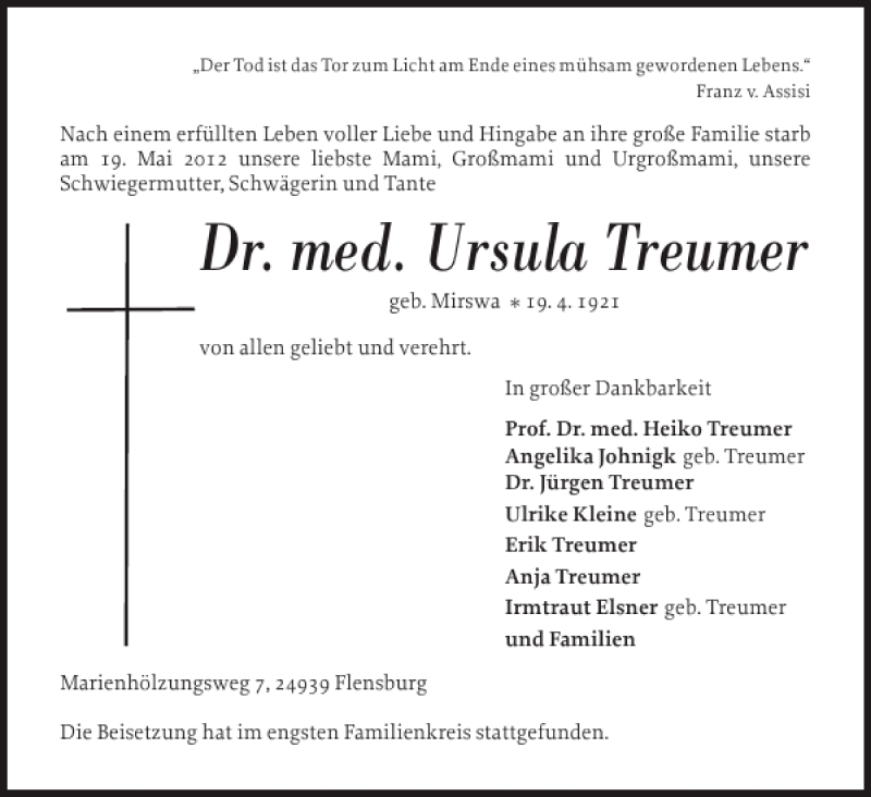 Hier finden Sie alle Traueranzeigen aus der Zeitung, die bisher für Dr. med. Ursula Treumer erschienen sind. Weitere Traueranzeigen, die in der Zeitung erscheinen, werden hier ebenfalls aufgelistet