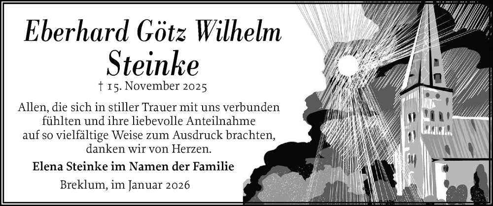 Hier finden Sie alle Traueranzeigen aus der Zeitung, die bisher für Eberhard Götz Wilhelm Steinke erschienen sind. Weitere Traueranzeigen, die in der Zeitung erscheinen, werden hier ebenfalls aufgelistet