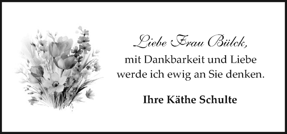 Hier finden Sie alle Traueranzeigen aus der Zeitung, die bisher für Frau Bülck erschienen sind. Weitere Traueranzeigen, die in der Zeitung erscheinen, werden hier ebenfalls aufgelistet