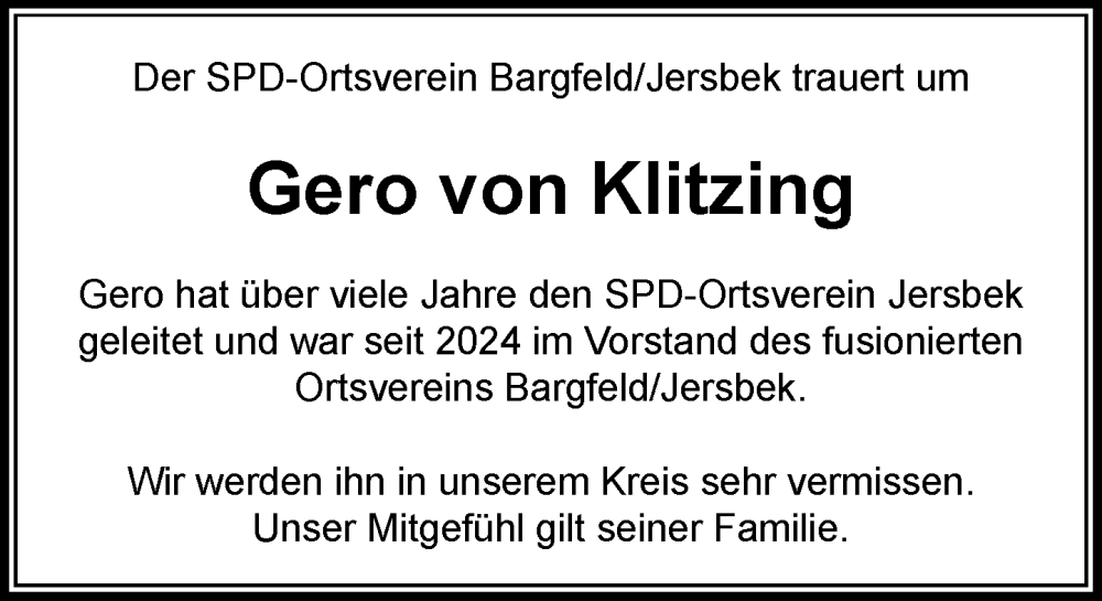 Hier finden Sie alle Traueranzeigen aus der Zeitung, die bisher für Gero von Klitzing erschienen sind. Weitere Traueranzeigen, die in der Zeitung erscheinen, werden hier ebenfalls aufgelistet