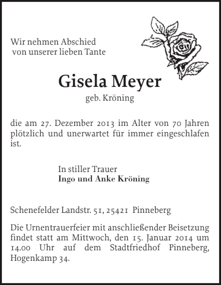 Hier finden Sie alle Traueranzeigen aus der Zeitung, die bisher für Gisela Meyer erschienen sind. Weitere Traueranzeigen, die in der Zeitung erscheinen, werden hier ebenfalls aufgelistet