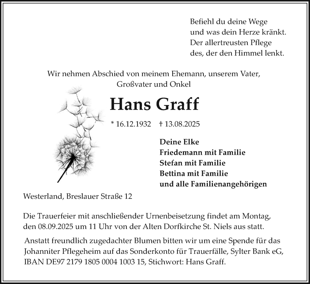 Hier finden Sie alle Traueranzeigen aus der Zeitung, die bisher für Hans Graff erschienen sind. Weitere Traueranzeigen, die in der Zeitung erscheinen, werden hier ebenfalls aufgelistet