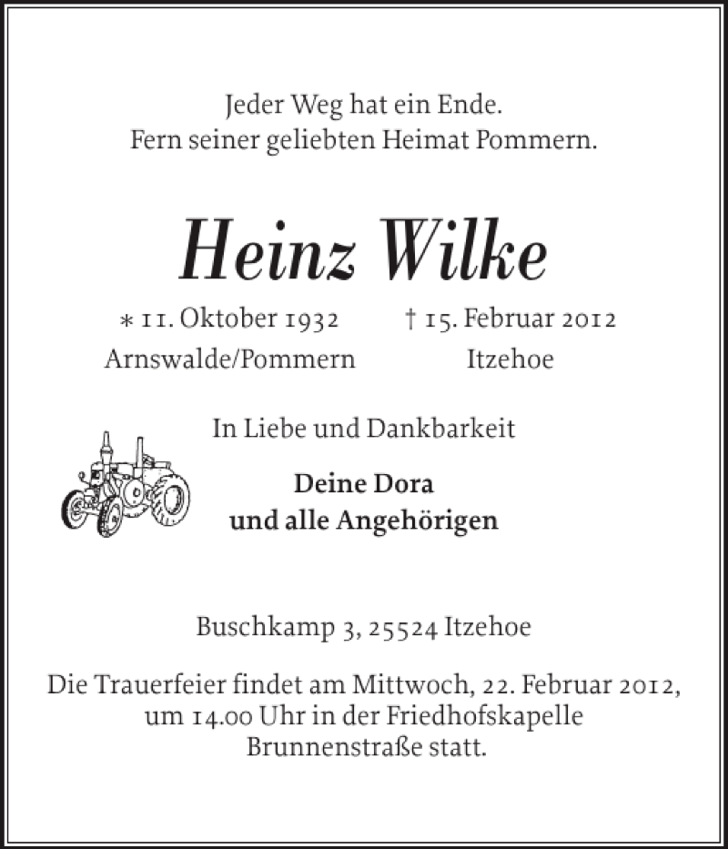 Hier finden Sie alle Traueranzeigen aus der Zeitung, die bisher für Heinz Wilke erschienen sind. Weitere Traueranzeigen, die in der Zeitung erscheinen, werden hier ebenfalls aufgelistet