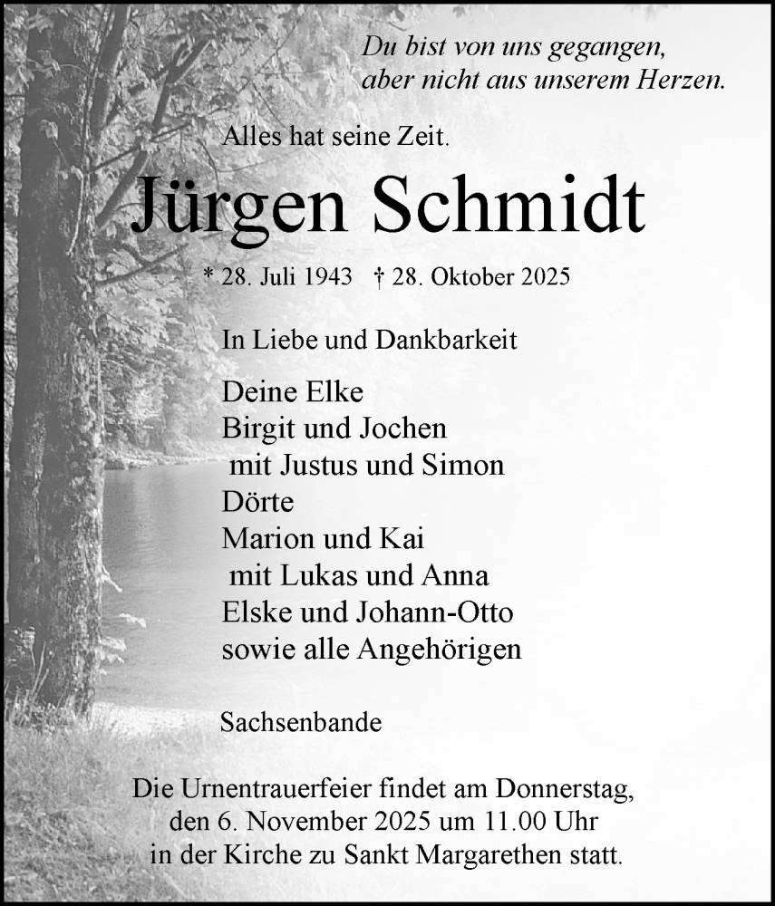 Hier finden Sie alle Traueranzeigen aus der Zeitung, die bisher für Jürgen Schmidt erschienen sind. Weitere Traueranzeigen, die in der Zeitung erscheinen, werden hier ebenfalls aufgelistet
