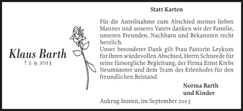 Hier finden Sie alle Traueranzeigen aus der Zeitung, die bisher für Klaus Barth erschienen sind. Weitere Traueranzeigen, die in der Zeitung erscheinen, werden hier ebenfalls aufgelistet