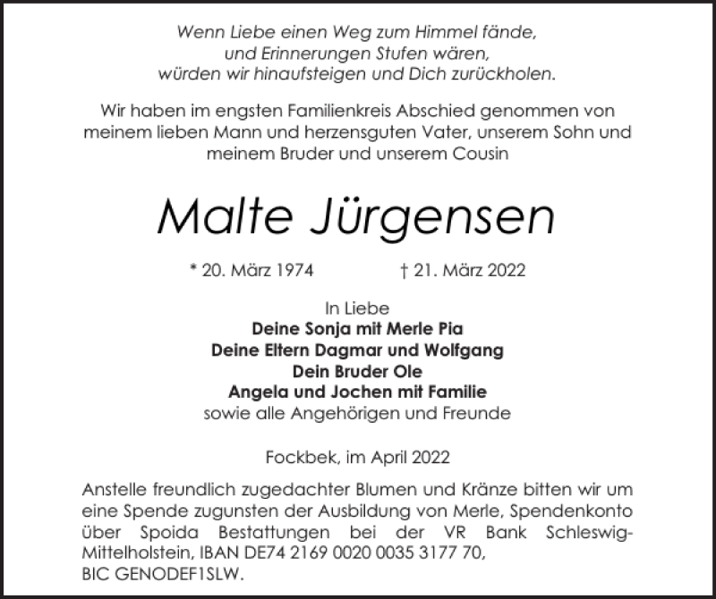 Hier finden Sie alle Traueranzeigen aus der Zeitung, die bisher für Malte Jürgensen erschienen sind. Weitere Traueranzeigen, die in der Zeitung erscheinen, werden hier ebenfalls aufgelistet