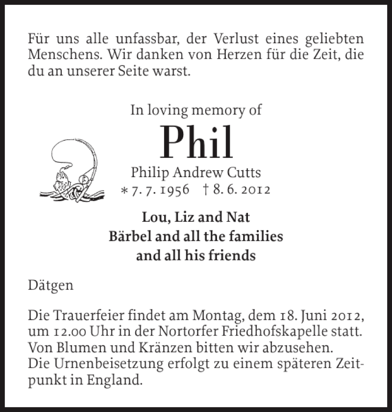 Hier finden Sie alle Traueranzeigen aus der Zeitung, die bisher für Phil erschienen sind. Weitere Traueranzeigen, die in der Zeitung erscheinen, werden hier ebenfalls aufgelistet