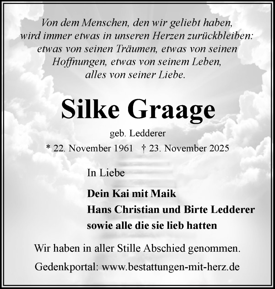 Hier finden Sie alle Traueranzeigen aus der Zeitung, die bisher für Silke Graage erschienen sind. Weitere Traueranzeigen, die in der Zeitung erscheinen, werden hier ebenfalls aufgelistet
