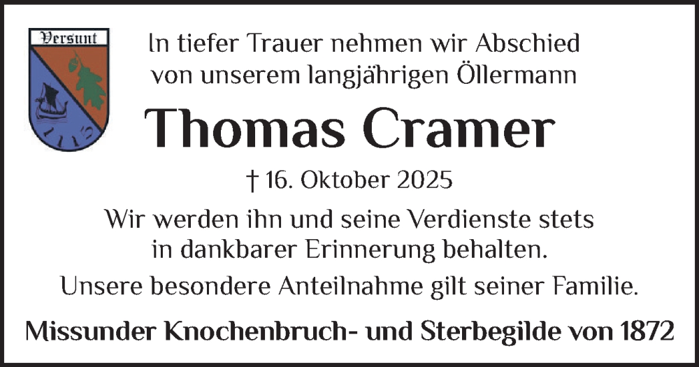 Hier finden Sie alle Traueranzeigen aus der Zeitung, die bisher für Thomas Cramer erschienen sind. Weitere Traueranzeigen, die in der Zeitung erscheinen, werden hier ebenfalls aufgelistet