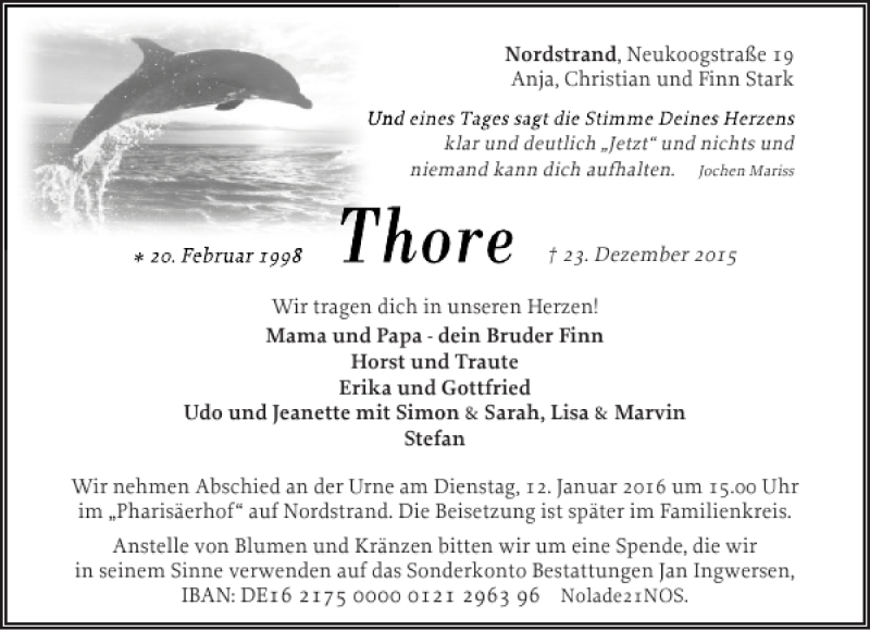 Hier finden Sie alle Traueranzeigen aus der Zeitung, die bisher für Thore erschienen sind. Weitere Traueranzeigen, die in der Zeitung erscheinen, werden hier ebenfalls aufgelistet
