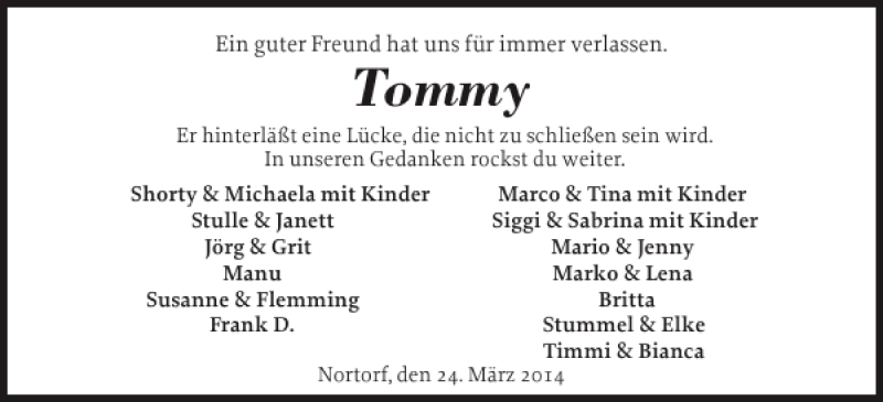 Hier finden Sie alle Traueranzeigen aus der Zeitung, die bisher für Tommy erschienen sind. Weitere Traueranzeigen, die in der Zeitung erscheinen, werden hier ebenfalls aufgelistet
