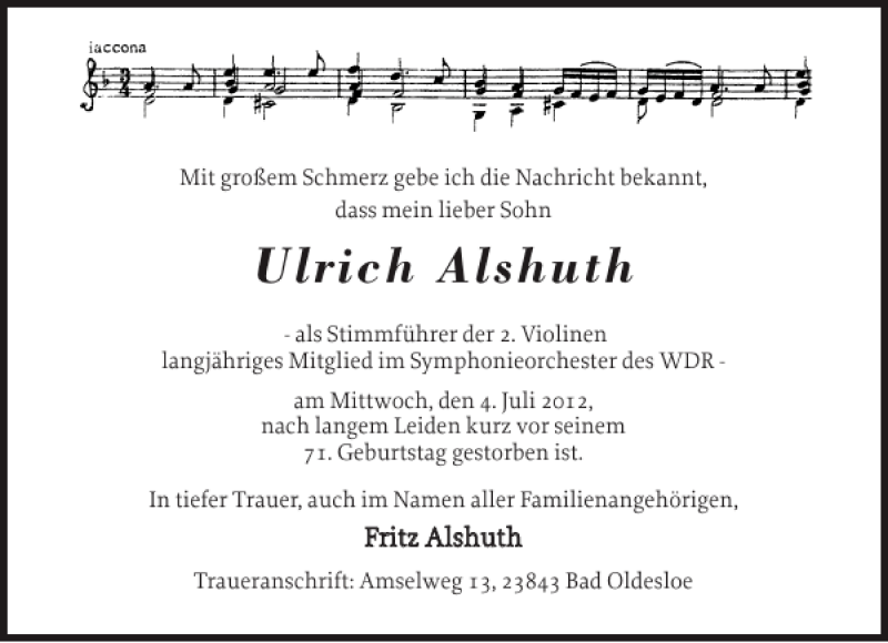 Hier finden Sie alle Traueranzeigen aus der Zeitung, die bisher für Ulrich Alshuth erschienen sind. Weitere Traueranzeigen, die in der Zeitung erscheinen, werden hier ebenfalls aufgelistet