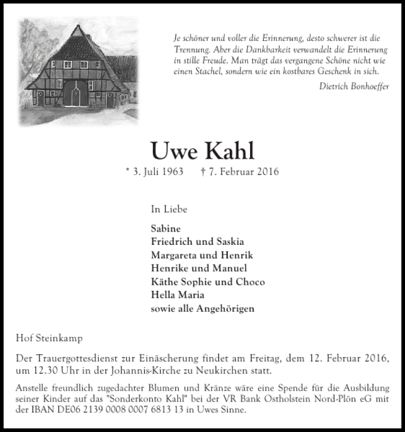 Hier finden Sie alle Traueranzeigen aus der Zeitung, die bisher für Uwe Kahl erschienen sind. Weitere Traueranzeigen, die in der Zeitung erscheinen, werden hier ebenfalls aufgelistet