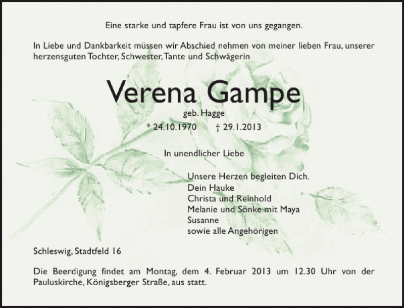 Hier finden Sie alle Traueranzeigen aus der Zeitung, die bisher für Verena Gampe erschienen sind. Weitere Traueranzeigen, die in der Zeitung erscheinen, werden hier ebenfalls aufgelistet